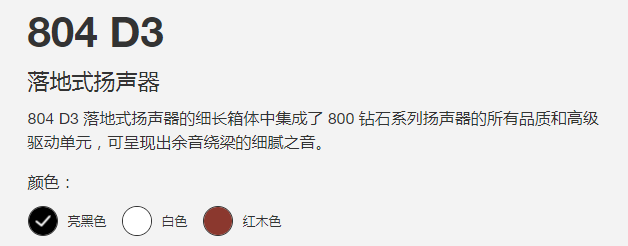 | 關(guān)鍵詞: | 804 D3 落地式揚聲器的細長(cháng)箱體中集成了 800 鉆石系列揚聲器的所有品質(zhì)和高級驅動(dòng)單元,可呈現出余音繞梁的細膩之音。 |